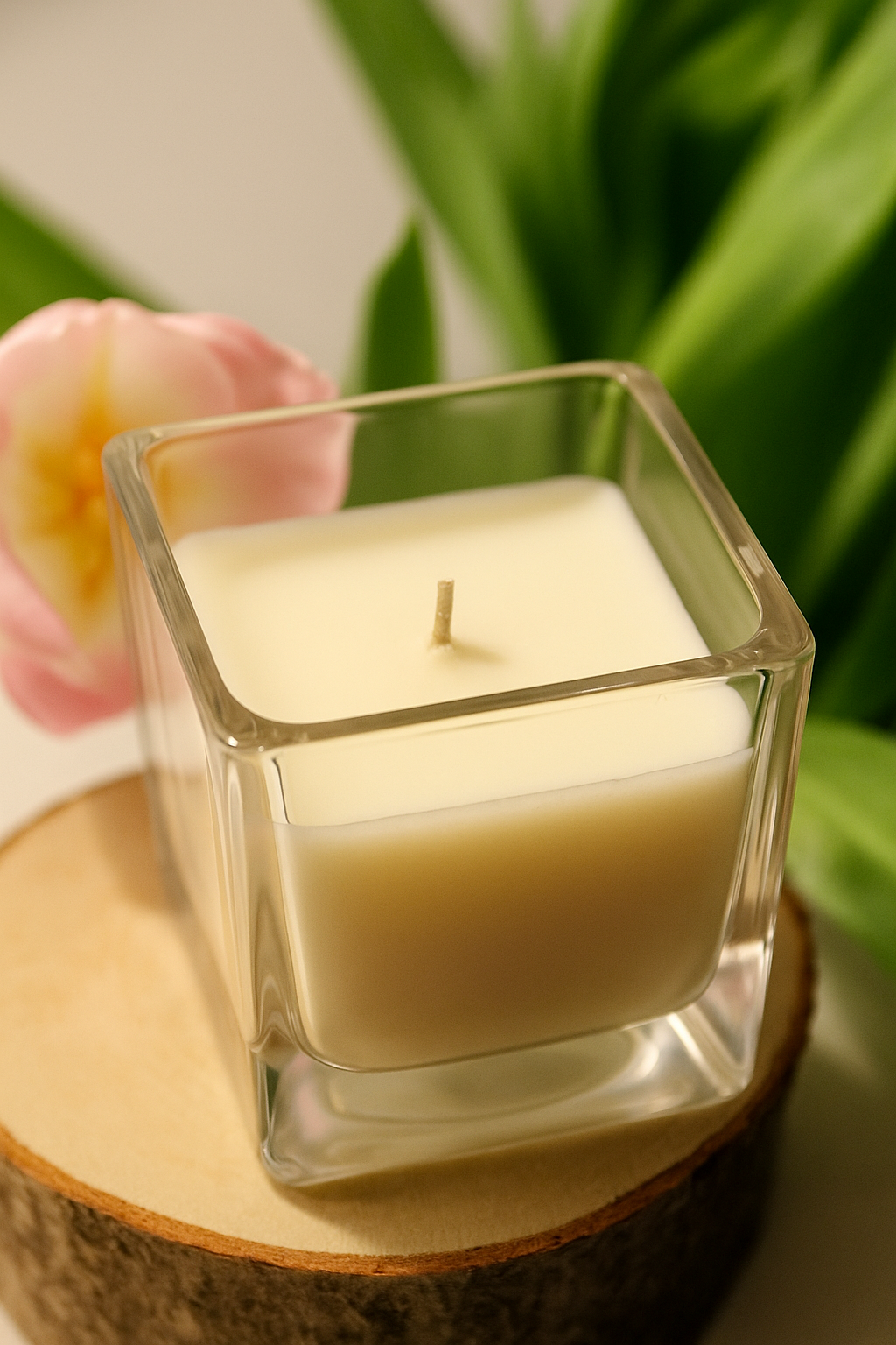 Cette bougie est réalisée de façon artisanale, coulée à la main avec de la cire de soja. On y ajoute du parfum venant directement de la ville de Grasse (France), bien connue pour sa production de parfums. Celui-ci est sans substance toxique et cancérigène et respecte les normes IFRA et CLP CE N°1907/200.
